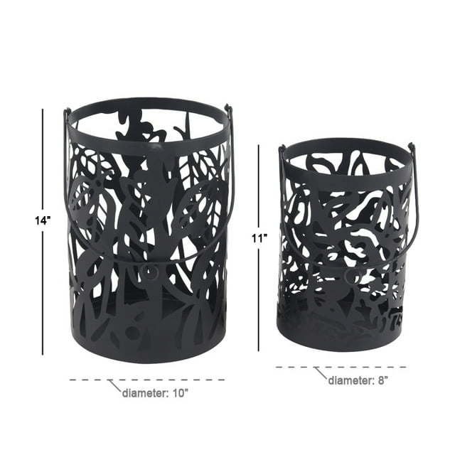 Home > Decmode Eclectic 11 And 14 Inch Round Black Iron Candle Lanterns - Set of 2